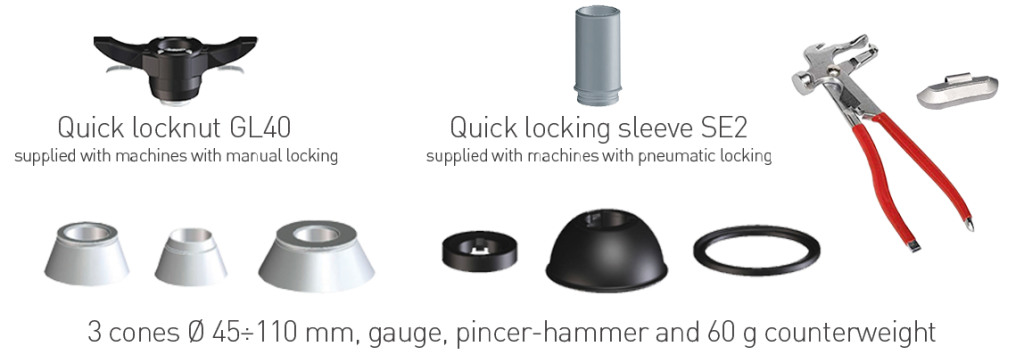MB400XL con portapesi maggiorato è dotata del sistema di avvicinamento automatico: arresto automatico della ruota in prossimità dei punti di applicazione del peso di correzione e freno di stazionamento elettrico.